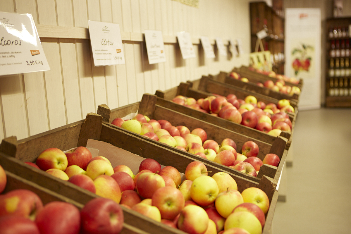 In our farm shop you will find the crunchiest Demeter-apples from our orchards every Saturday from 10.00 am – 2.00 pm from September to June. Around 30 different varieties grow at Neuhollandshof.
